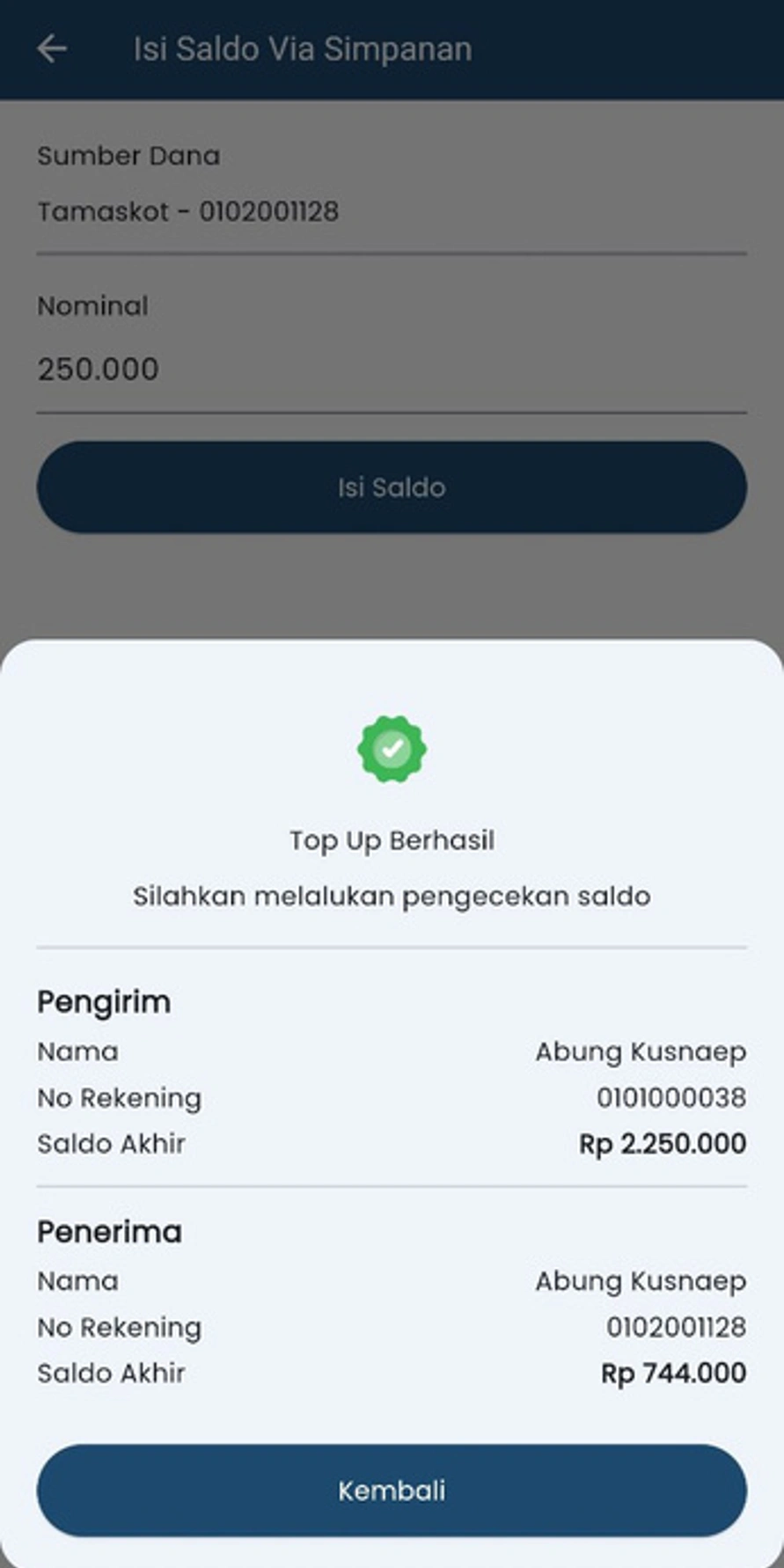 | 2 | Deposit PT. USSI | 15.000 | 85.000 |